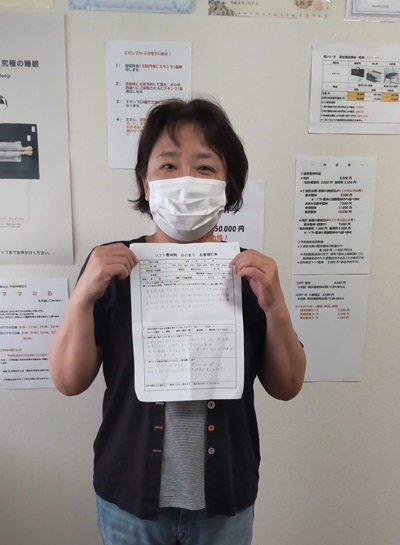 夫がすぐに症状改善していて、私にすすめるので半信半疑で通い始めました。腰痛はなくなり肩こりが気にならなくなりました。その上、あきらめていた冷え性まで治っていました。